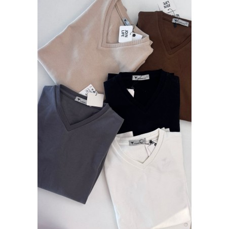 Le col en V ajoute une touche élégante et met en valeur le cou, permettant de le porter seul ou par-dessus une chemise pour un look sophistiqué. Disponible en différentes couleurs et textures, ce pull s'adapte facilement à une tenue décontractée avec un jean ou à une tenue plus habillée avec un pantalon et une chemise